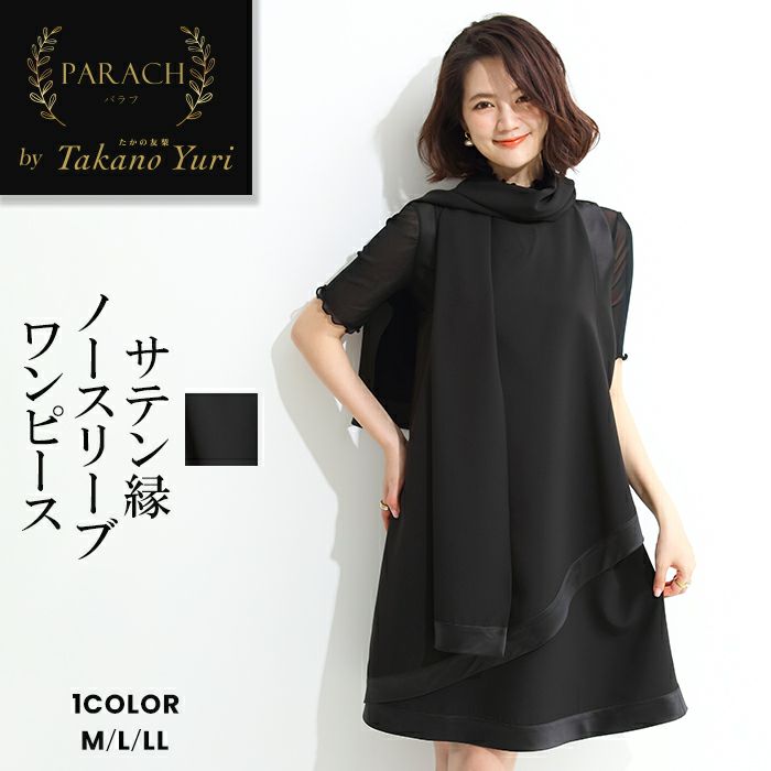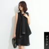 縁取りには異素材のサテン生地を使用しエレガントで上品な印象を与えます。 サテン縁ノースリーブワンピース