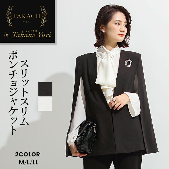 ケープのようなシルエットにより品と風格のあるコーデが可能。 スリットスリムポンチョジャケット