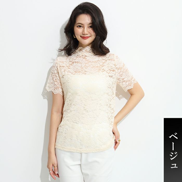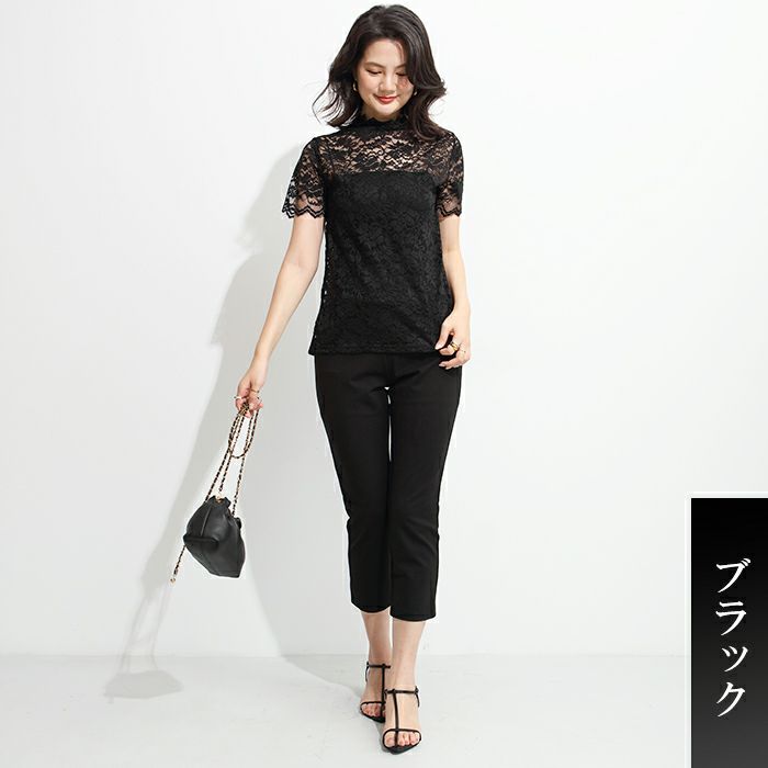 ストレッチレース5分袖ブラウス